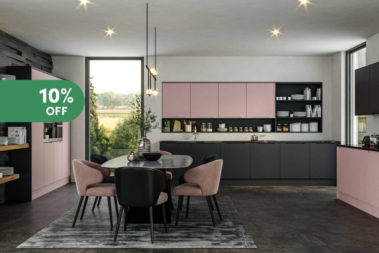 The handleless Lazio kitchen style is an ultra-modern kitchen that will look perfect in any home, adding contemporary character and a sleek finish. The distinctive doors of the Lazio kitchen bring a unique edge to your space, especially when combining two contrasting colours or finishes. Its sophisticated lines and minimalist design are bound to leave a lasting impression on your guests.