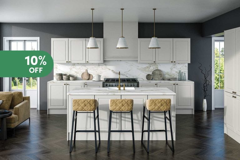 In this distinctly classic kitchen with a contemporary twist, the handleless design blends form and function whilst maintaining sleek lines and an inviting aesthetic. The deep-framed design harkens to timeless kitchen styling, giving an overall traditional feel which is embellished with in-rail detailing. The Richmond style will leave your kitchen space exuding a distinctive charm that your guests will love.